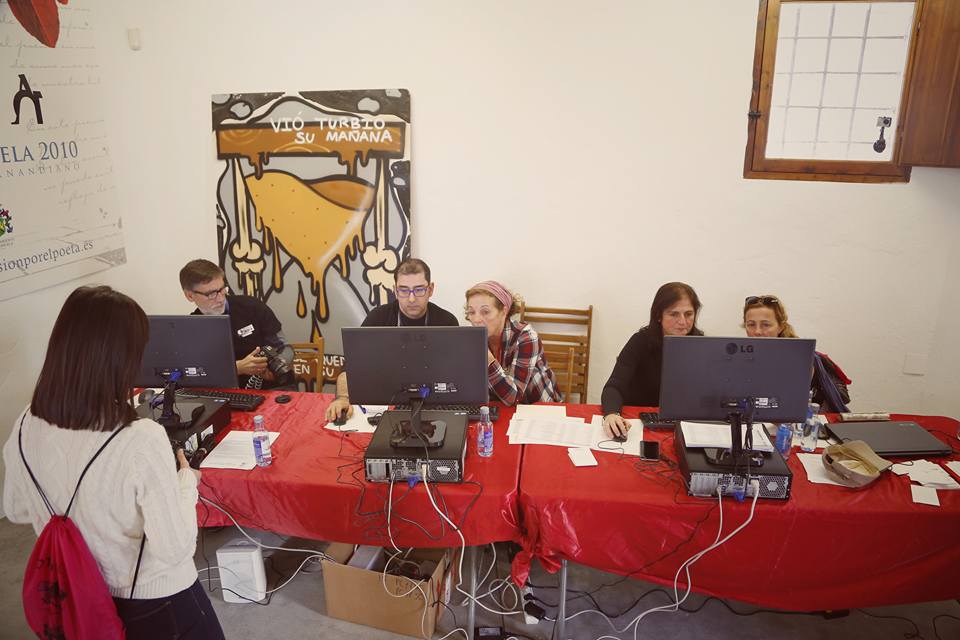 Tuvimos un taller para que al final del día todos los participantes pudieran llevarse una estampa con la imagen de Miguel Hernández de recuerdo, todo un trabajo artesanal perfectamente coordinado.